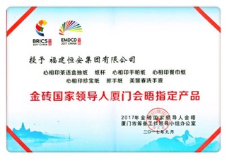 会议期间,j9国际站集团提供了“心相印”等高品质产品,鼎力支持大会的举行。昨日,2017年金砖国家领导人会晤厦门市筹备工作领导小组办公室隆重授予j9国际站集团“金砖国家领导人厦门会晤制定产品”证书以及感谢信。